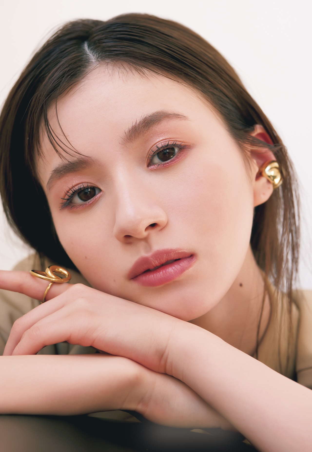 ピンクは、きれいめ服と相性のよいレディなカラーだからこそ、ほんのり気配を感じる絶妙な盛りバランスがポイントに。なんか洒落て見える! を叶えるメイクは、〝レイヤード〟がポイント。透けるような質感が重なり合うことで、自然な奥行きと光をまとうような立体感が生まれる!
