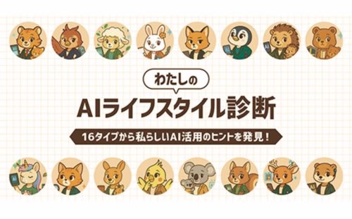 國本さんが代表理事を務めるWAIJの公式LINE提供の無料診断コンテンツで、AI時代の働き方や生き方を16タイプに分けて楽しく発見できる。質問に答えると、自分に合ったAI活用法や具体的なプロンプトを提示。可能性を広げるヒントが見つかる!