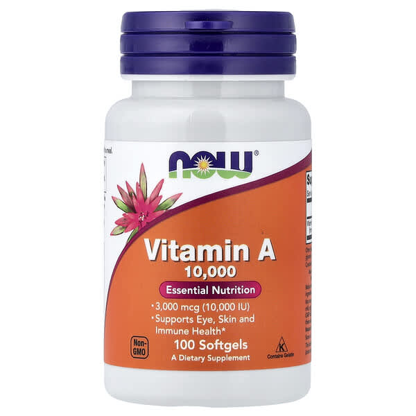 コスパの良さで人気のNOW Foodsの、1粒で3,000mcgのビタミンAが摂れるサプリメント。小粒のソフトジェルで飲みやすさも◎。