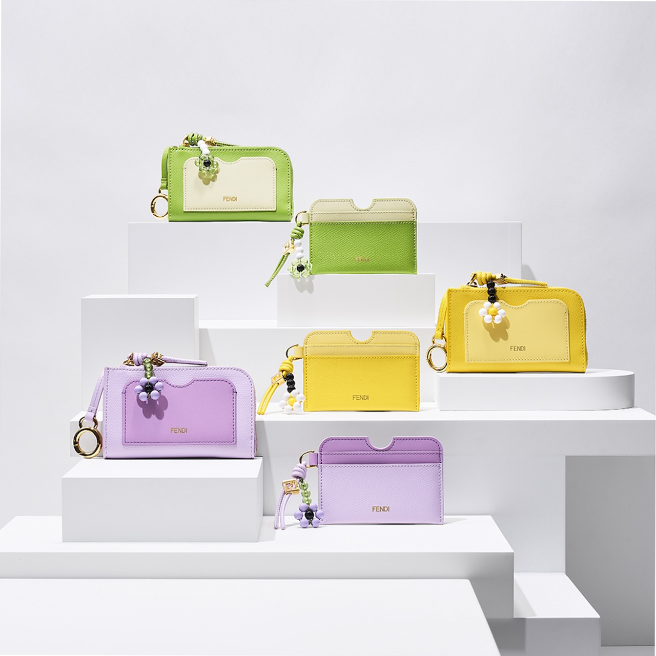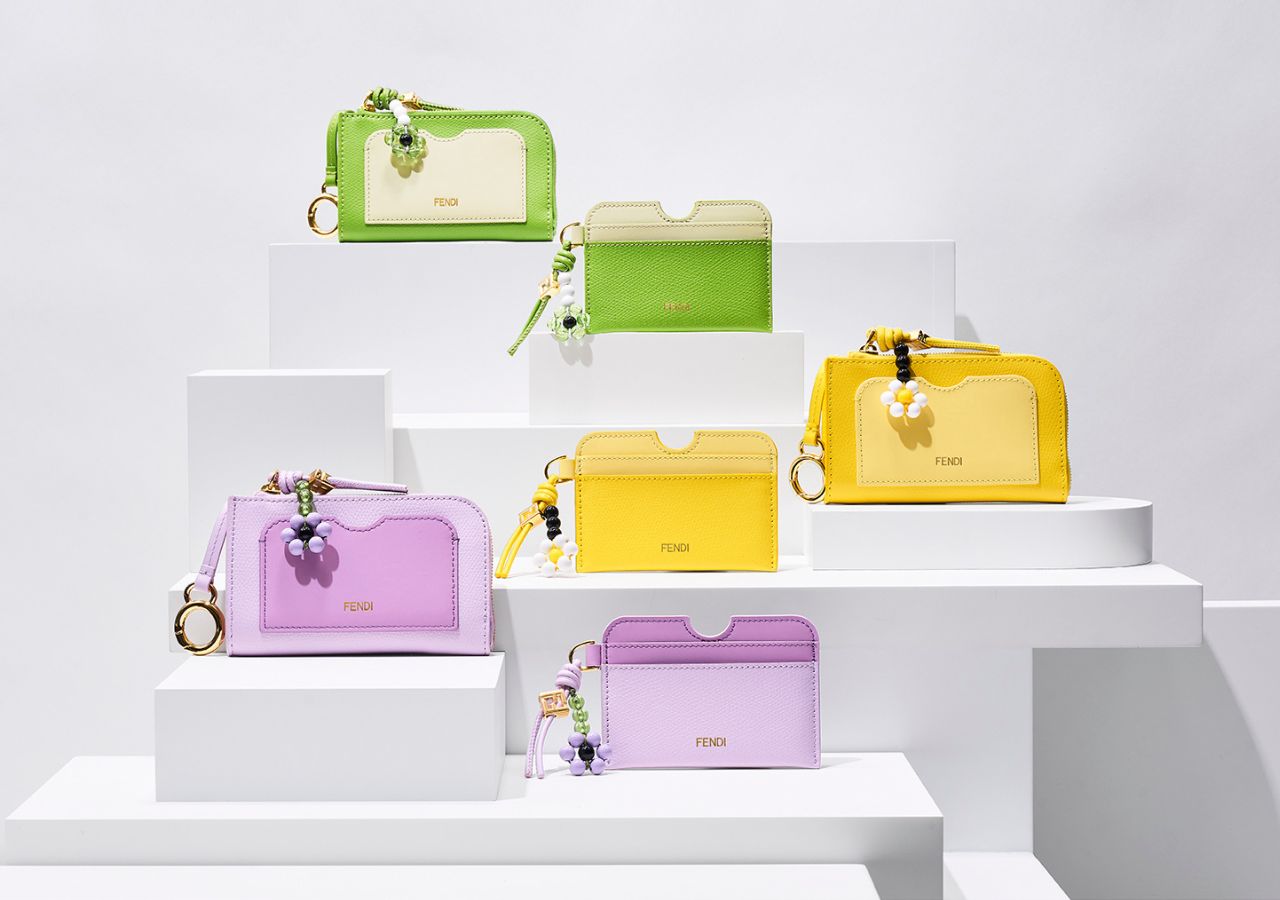 大胆なバイカラーと ダイアゴナルに配置された「FF」ロゴがアイコニックな「FF ダイヤモンド」は、2026 年春夏コレクションの メインカラー、ブルームイエローやアネモネ、ライトグリーンがラインナップ。スモールレザーグッズコレクションに魅力的な活気を与えるカラバリに。