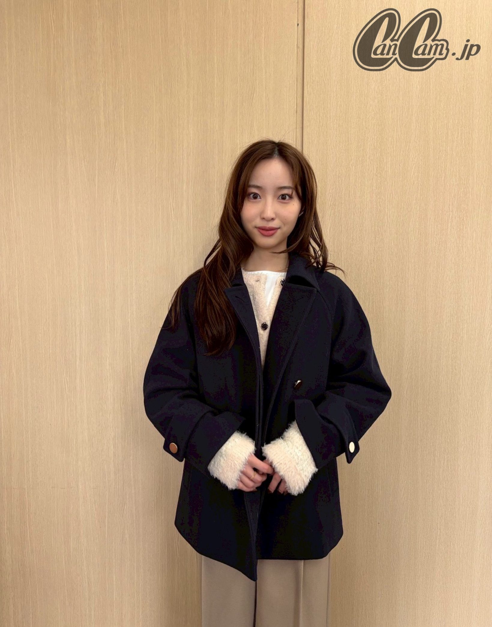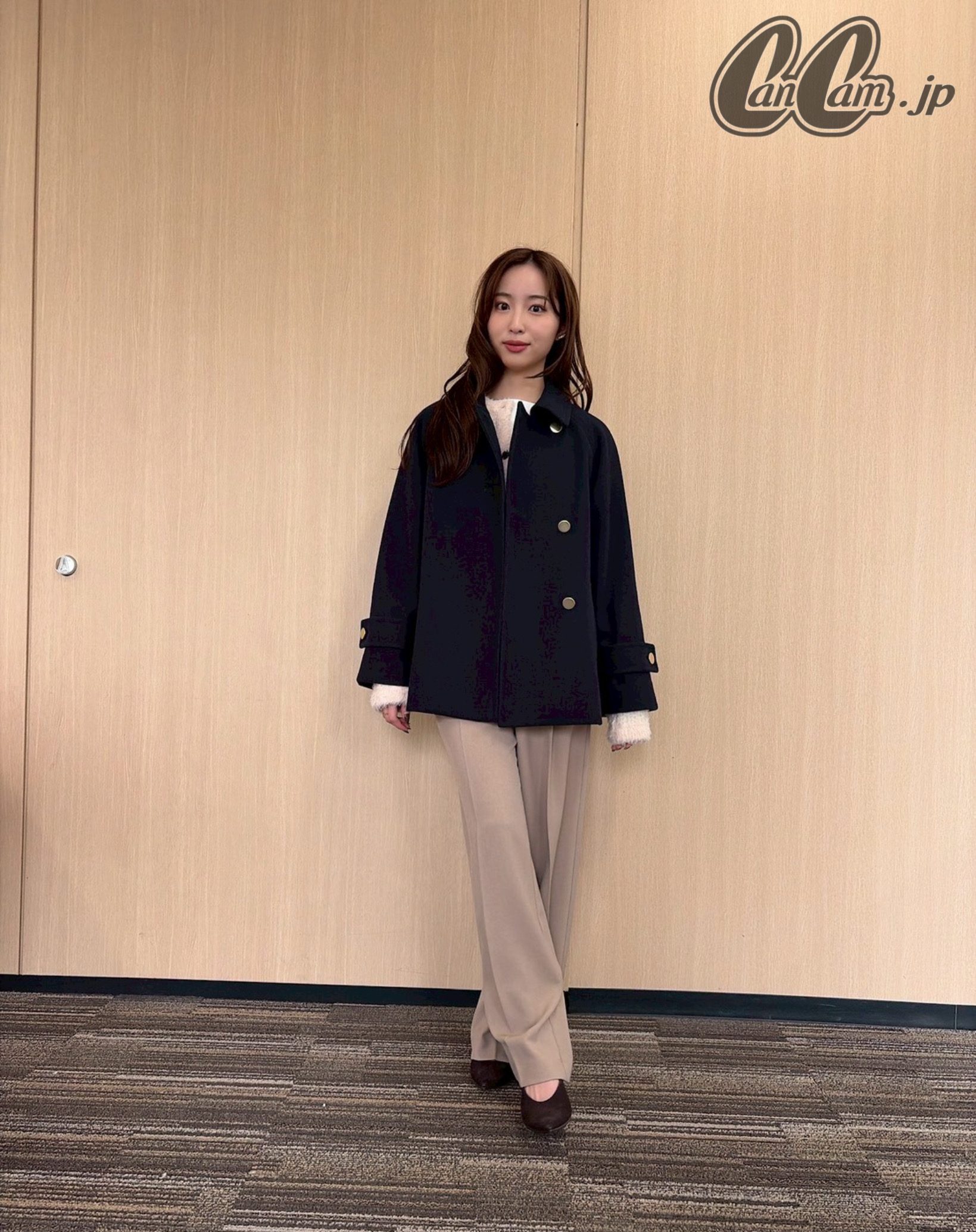 ■3/4(水)/ネイビーショートコート×ブラウンタックパンツ