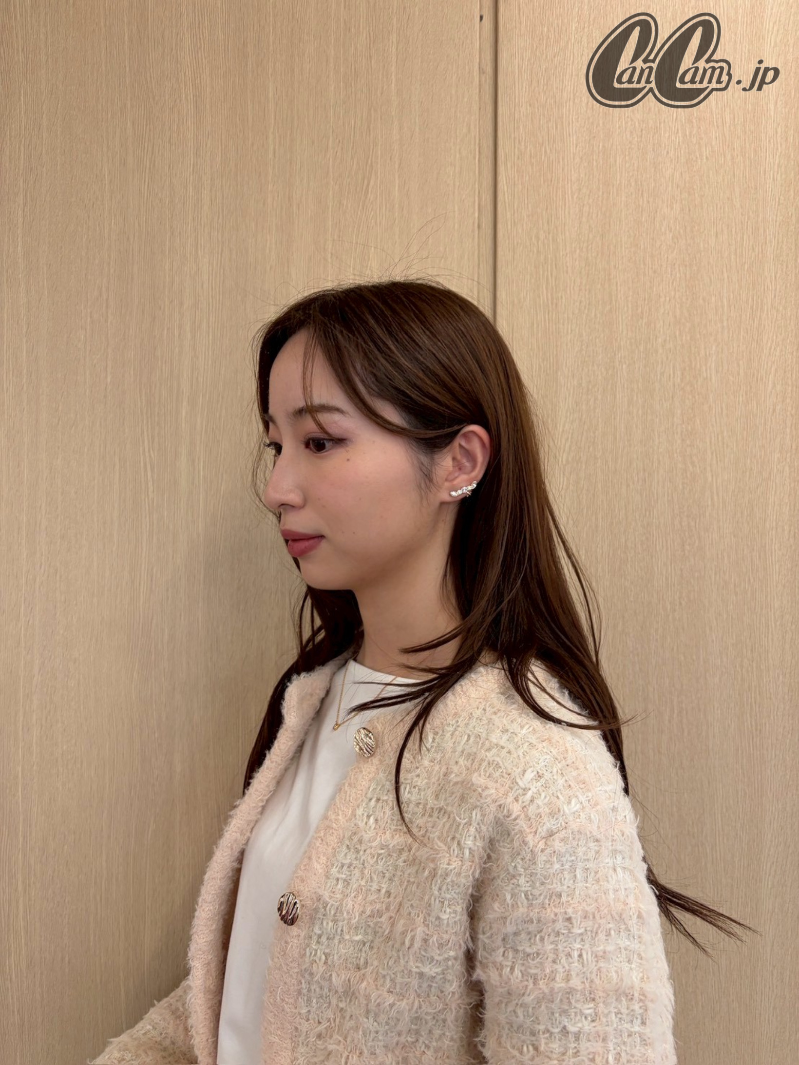 ツイードを合わせて一気に春気分♡【林さんのツイード風ニットカーディガン着用画像5枚】