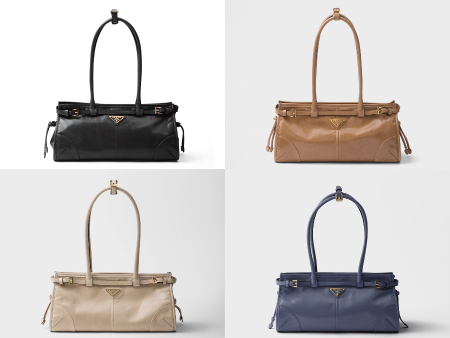 細長いシルエットにスレンダーなハンドル、ベルト風バックルや結び目のディテールが印象的な「プラダ ボニー」バッグ。スタイリッシュさはもちろん、機能性も兼ね備えたデザインでデイリー使いにぴったりです。