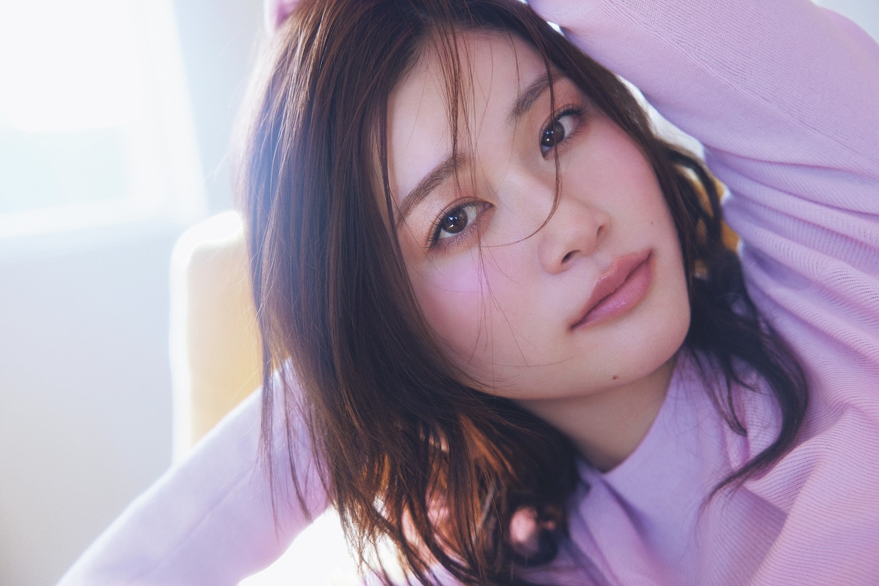 ファッションを更新したら、ミニマルなセミマット肌×青みピンクメイクで、旬顔にアプデ! ハイライトチークで、頬に色味と透明感を同時に出すのがポイント。