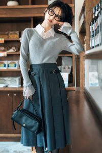 【4/16のコーデ】小顔見えが叶う♡ Vネックブラウスの着こなし