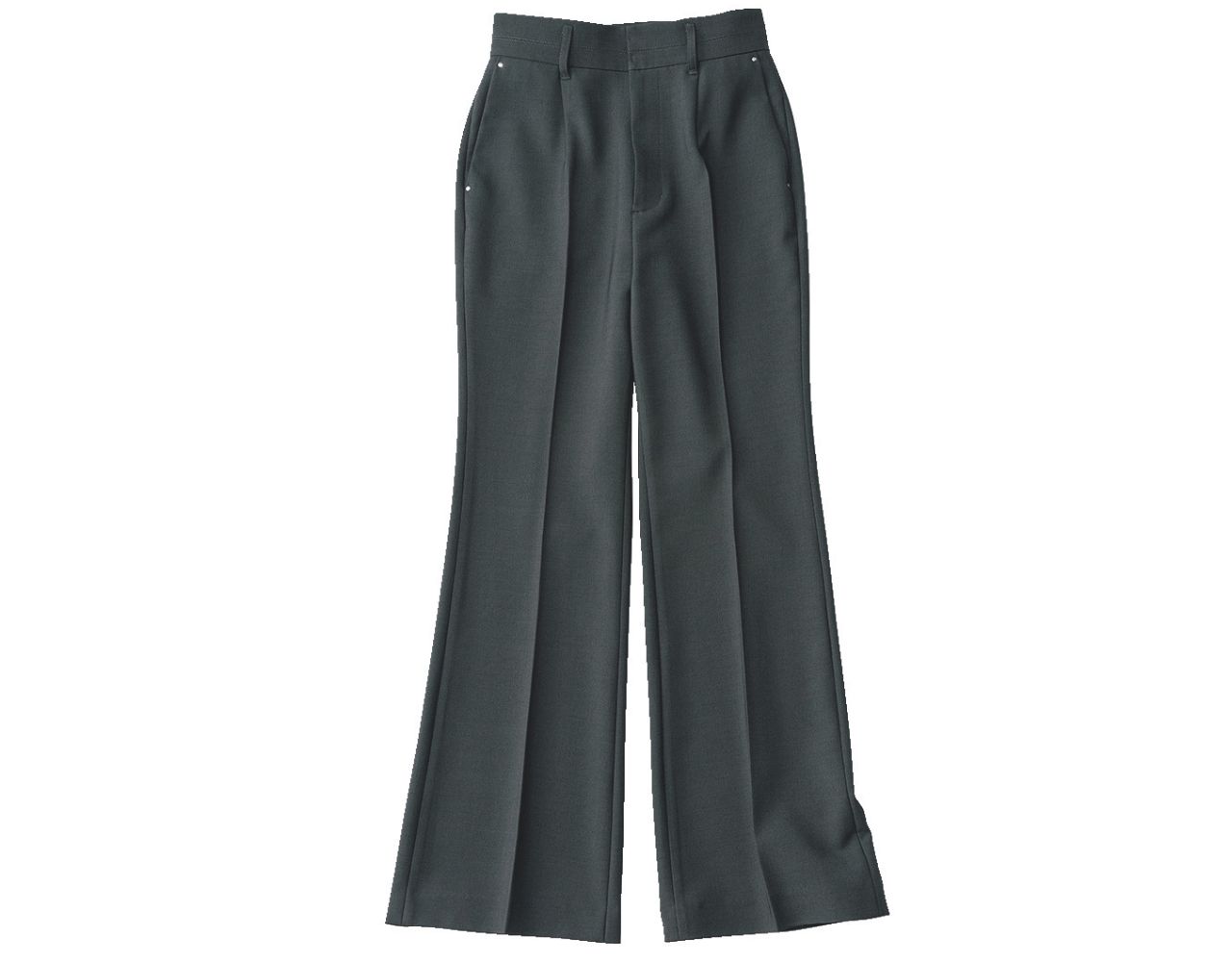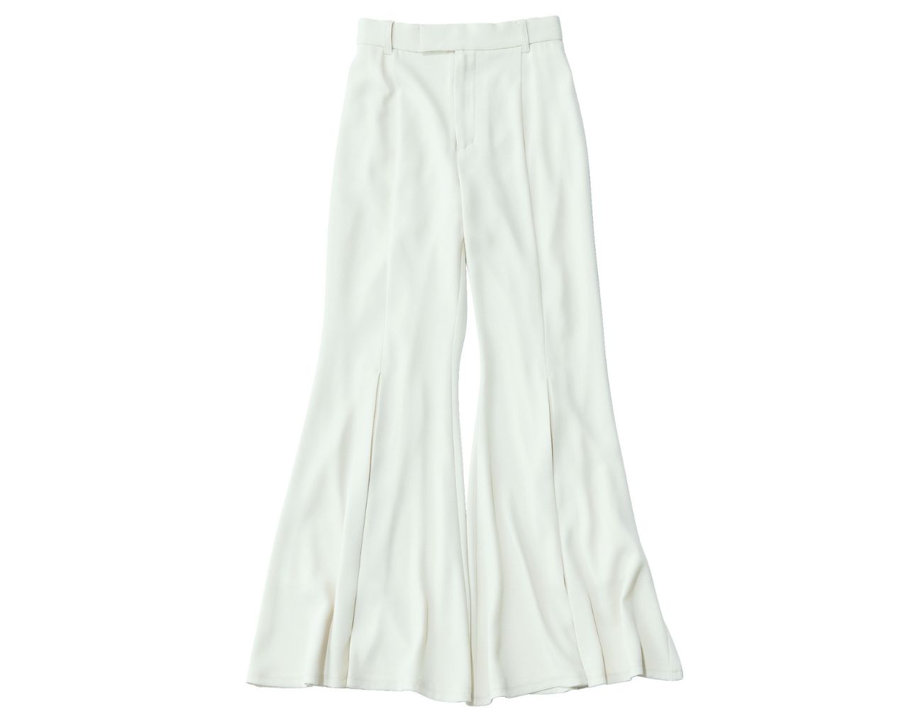 ウエストを切り替えずそのままくびれに沿って立ち上がらせることで、自然と腰位置を高く演出! さらにストンと落ちるシルエットとセンタープレスが、まっすぐきれいな美脚へと導いてくれる。ブランドオリジナルの独特なハリ感と膨らみのある生地で、身体のラインを拾いにくいのもポイント。ベージュグラデでトーンをそろえて、上品かつスッキリとしたすらりボディに。
