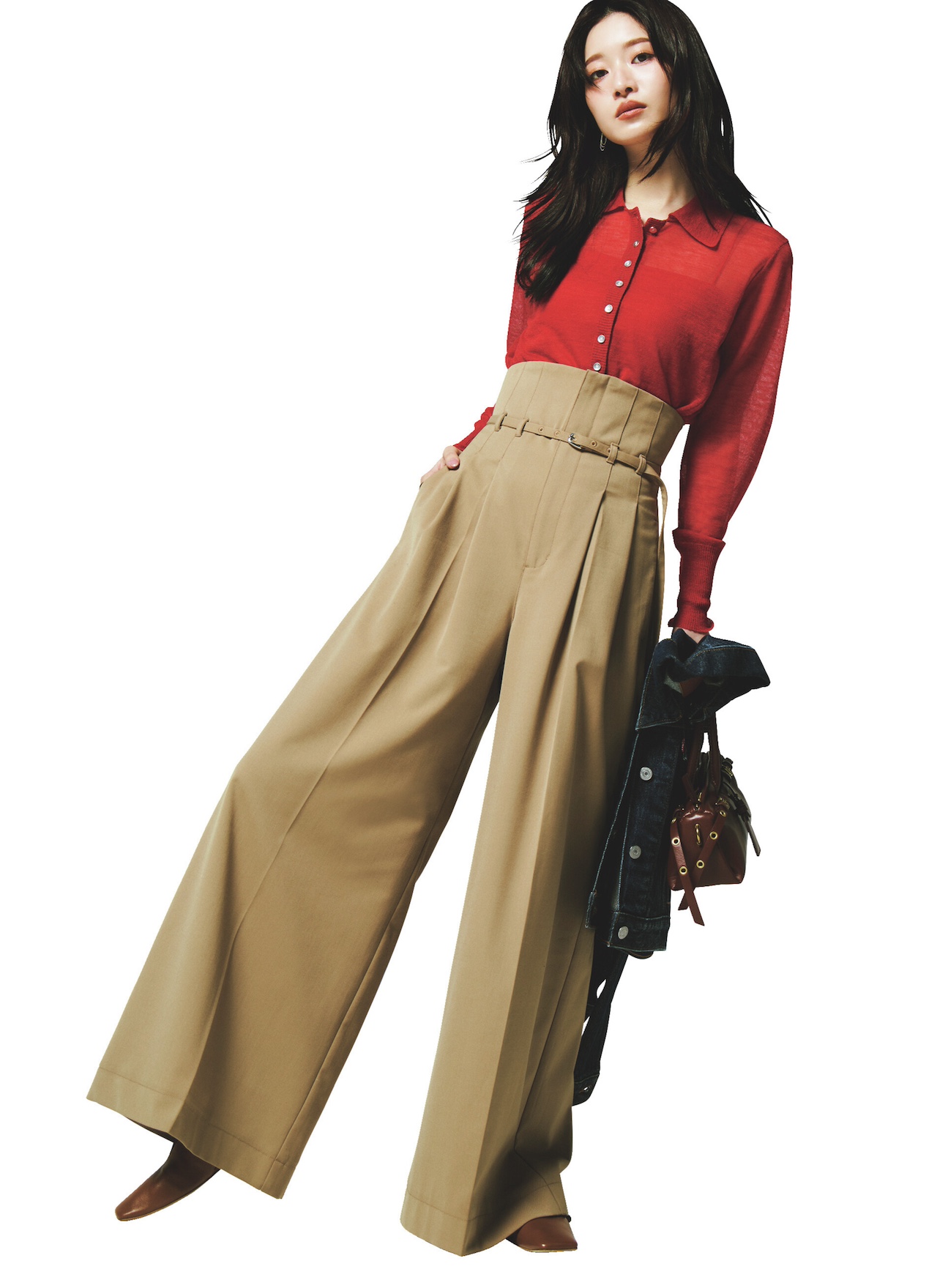 ◾️盛れすぎ注意! 〝ほぼ脚!?〟なスタイルが叶うワイドパンツに赤をさして、ノンシャランな色気も投入♥