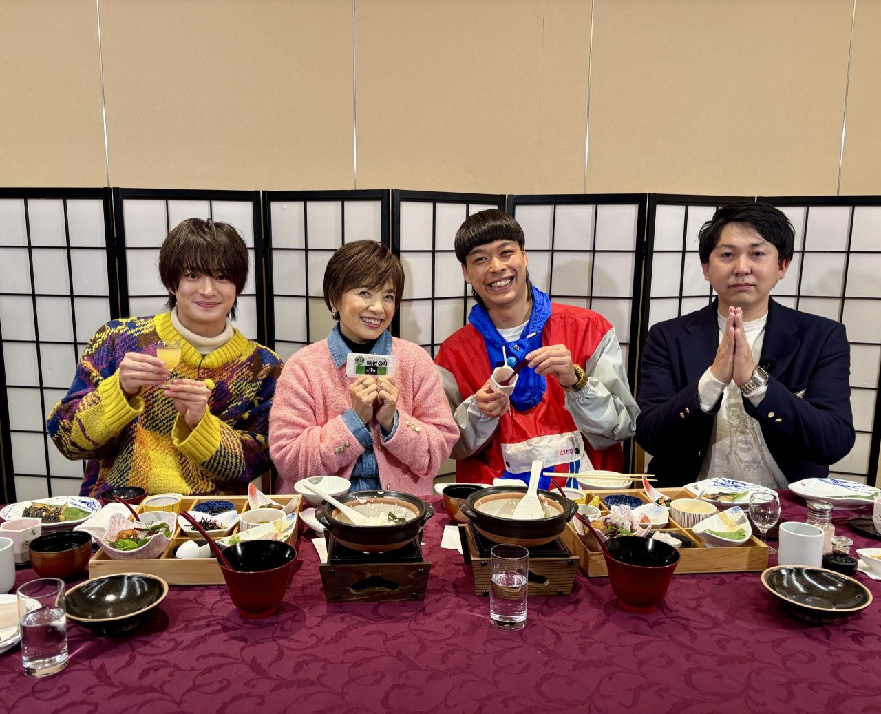 他にも、9年連続で「人気温泉旅館ホテル250選」に選ばれており“5つ星の宿”に選出された名宿「城崎の源泉の湯 宿中屋」では、炊きたて土鍋ごはんや自家製豆腐、千葉づくしの小鉢など究極の和朝食が登場。浮所さんとバッテリィズのふたりも、その美味しさに思わず「やばいっすね」と声を漏らします。