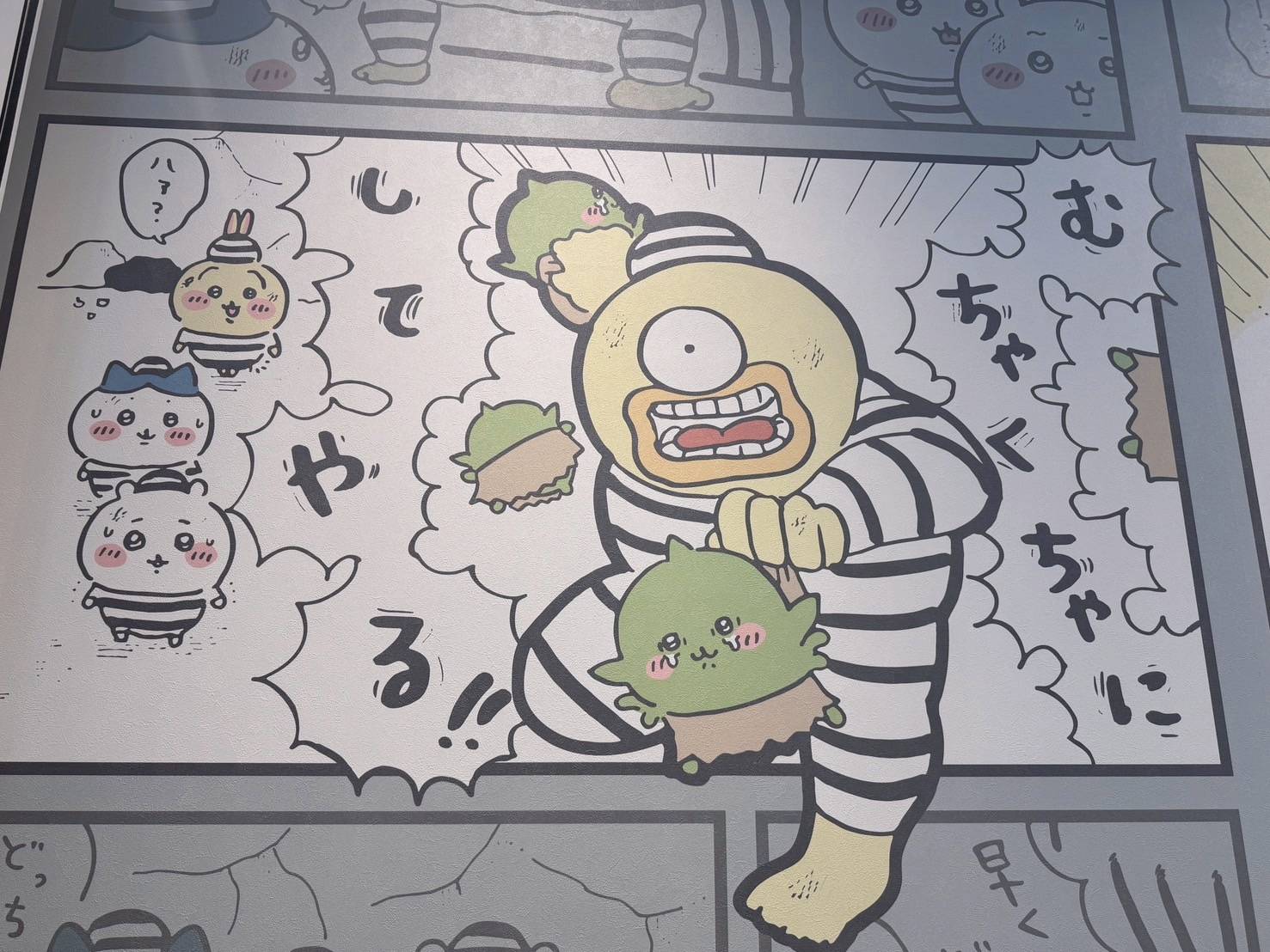 施設に入ると、壁一面にちいかわの絵があって最高でした。