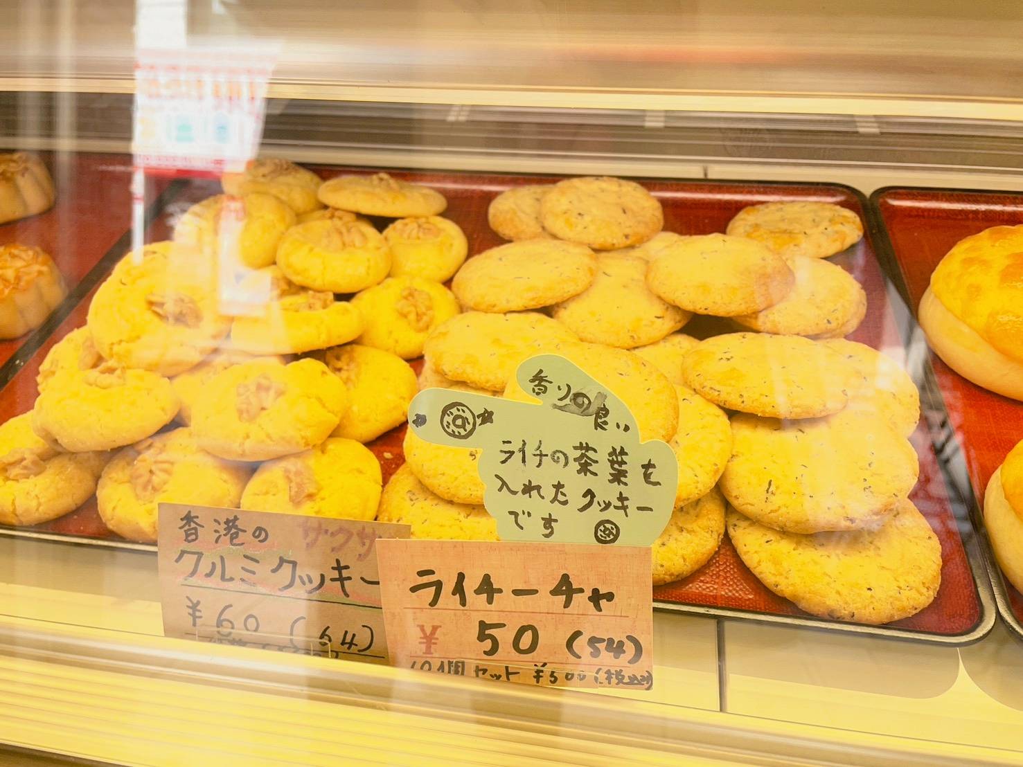 店員さん「ライチ―チャは、日本でここだけしか食べられません。こちらのクルミクッキーは香港映画『旅立ちのラストダンス』にも登場します」