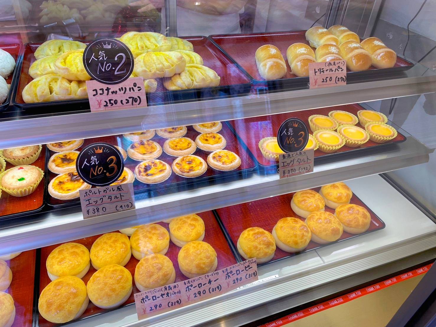どれもおいしそうで、一体何を買ったらいいか悩みます! すぐに店員さんがメニューをひとつひとつ丁寧にの解説してくれたので、とても助かりました。こちらは香港の方がやっているお店で、日本でここだけしか食べられない香港のパンやスイーツもあります!まさに本場の味!