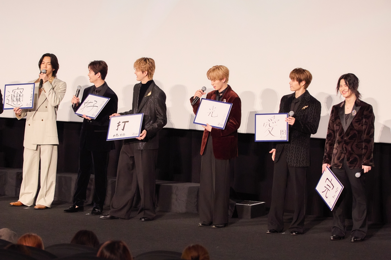 MCから、グループにとって過去最大規模のライブとなった公演の感想を改めて聞かれた後藤さんは「最高の演出で最高のライブだったと言い切れる公演だったので、INIのことが気になるとかライブに行ってみたいけどまだ行けてないという周りの方もぜひ連れてきて一緒に盛り上がってほしいです!」とコメント。今回、メンバー全員でULTRA 4 DX上映を一足先に体験したということで、西さんと松田さんはモーションチェアやエアーなどの臨場感あふれる特別上映の迫力について語りました。そして、バンテリンドーム ナゴヤ公演で披露したユニットステージのこだわりや裏話で盛り上がり、「INIのライブを漢字一文字で表すなら?」という質問にはメンバーがそれぞれフリップで回答。「光」「好」「躍」など個性あふれる回答と漢字に込めた思いを説明。最後に、リーダーの木村さんが「INIは今年で結成5周年を迎えます。バンテリンドーム ナゴヤ公演は5周年を迎える前の最後のライブになるので、目に焼き付けていただきたいです。より成長していくように頑張るので、これからのINIも温かい目で見守っていただけたらなと思います。今日はぜひライブフィルムを楽しんでいってください!」と語り、公開初日の舞台挨拶を終えました。今後も様々な情報が解禁されるので、今後の活動に注目です!