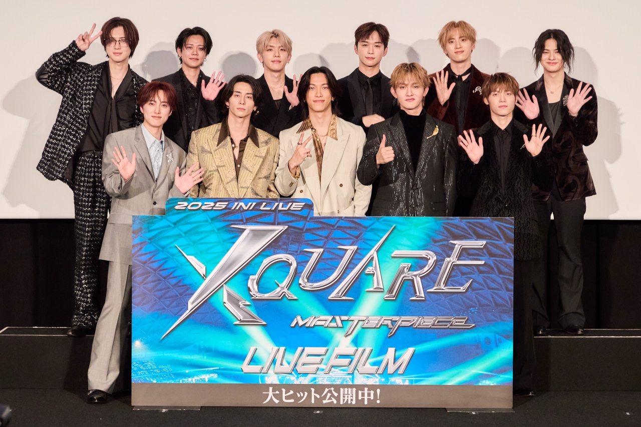 『2025 INI LIVE [XQUARE – MASTERPIECE] – LIVE FILM』は、昨年9月にバンテリンドーム ナゴヤで3日間にわたり開催されたライブを映画化した作品で、3月27日から公開。公開当日行われた舞台挨拶では、会場に集まった観客からの温かい拍手に迎えられながらメンバーが登壇。ひとりずつ自己紹介とともに全国の中継先の映画館に向けてそれぞれメッセージを送りました。