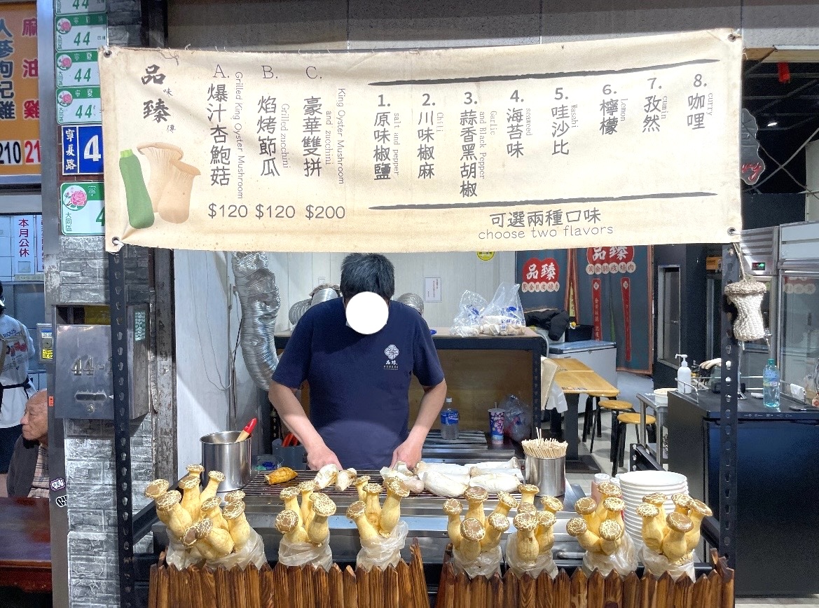 「え、なんかエリンギ刺さってるんだけど!」とあまりにかわいいビジュアルが印象的だったのがこのエリンギ焼きのお店。本当になんで店先にエリンギを刺したんだろう。