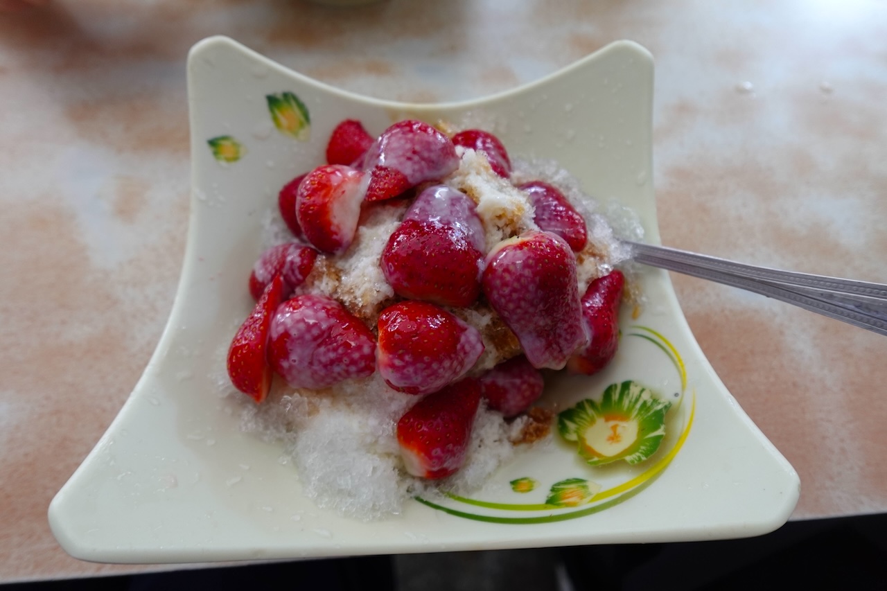 筆者は「草苺(台湾のいちご)」をチョイス! 酸味控えめでめちゃくちゃ甘〜いいちごがこんなにもたっぷり。シロップは黒蜜です。なのに、お値段は日本円で750円ほど。とってもお得ですよね♡
