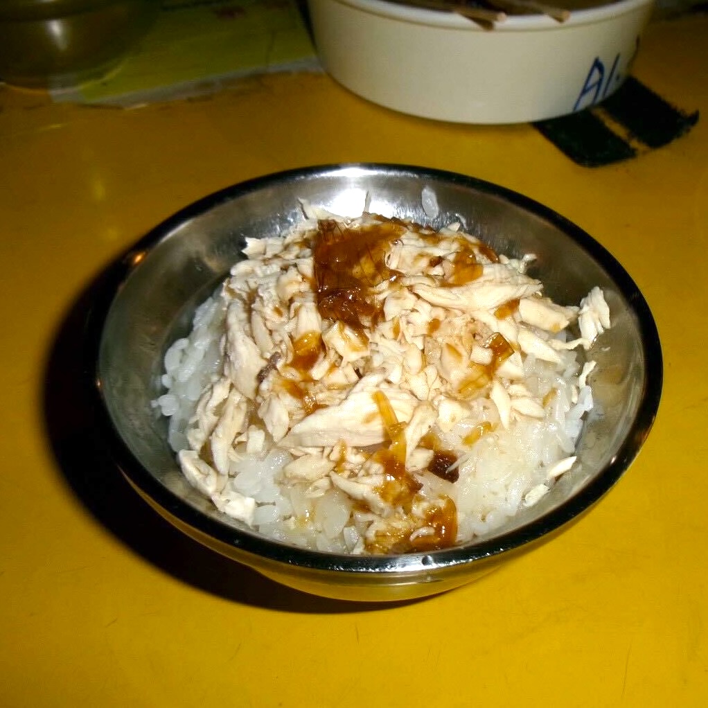 蒸した鶏肉を裂いたものをご飯に乗せ、醤油ベースのタレをかけたシンプルなご飯。鶏肉を使っているぶん、魯肉飯よりもあっさりしていて食べやすく、気づいたら食べ終わってます…!