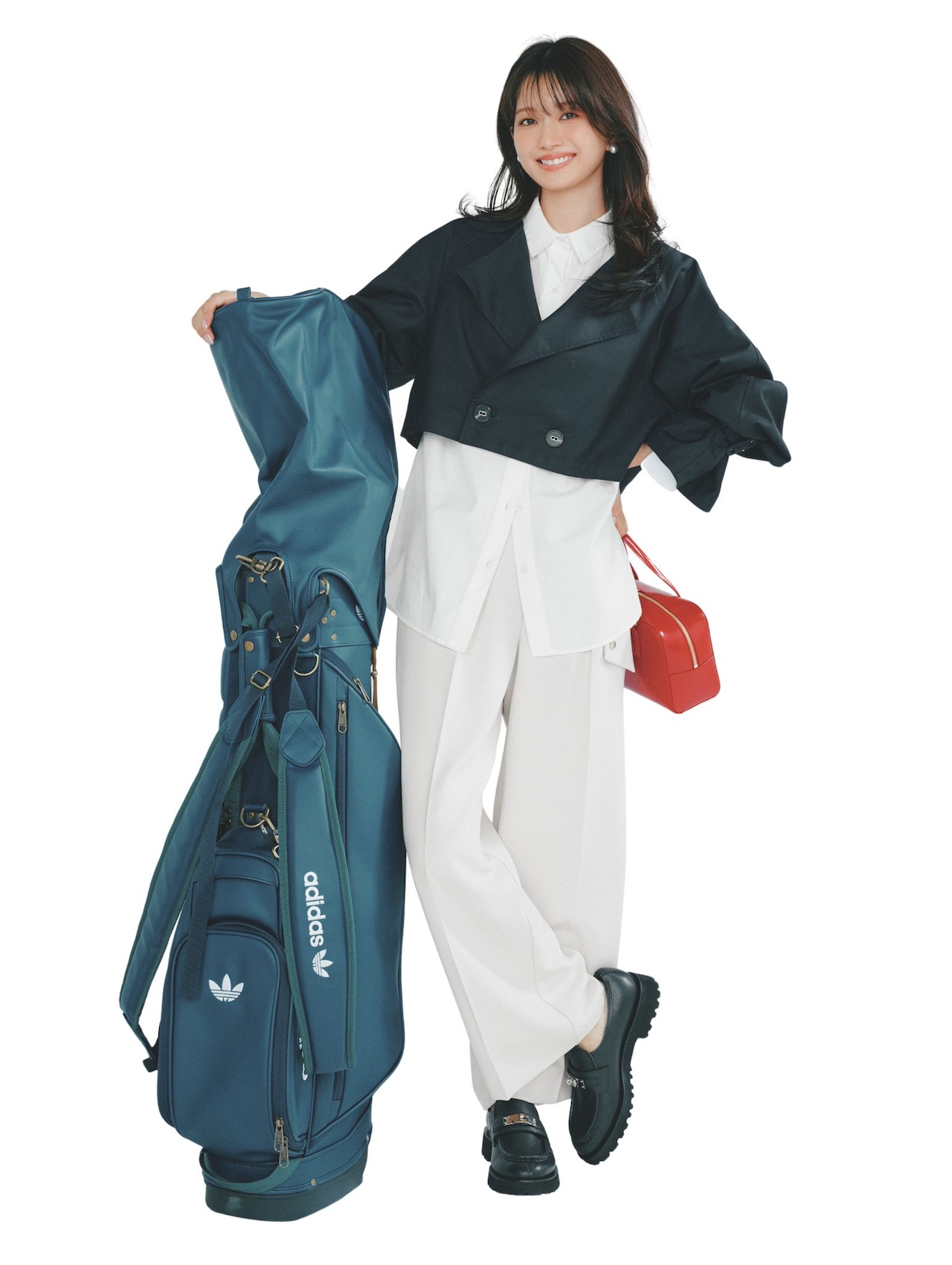 名門ゴルフ倶楽部で開催! マナー重視だから、淑女としてシャツとスラックスで品を香らせて。今日は3WAYトレンチをノーカラージャケットとして投入。袖のバックル付きベルトはゴム仕様だから腕まくりもしやすくアクティブに動ける。