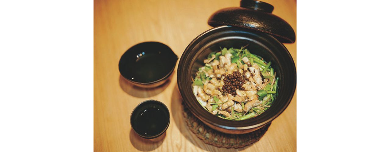 老舗和食店で研鑽を積んだ料理長がオープン。月替わりのショートコースのあとに、アラカルトで追加を選ぶ。安未がいただいた『鰻とせりの土鍋ご飯』は香りと旨みが食欲をそそる優しい味。