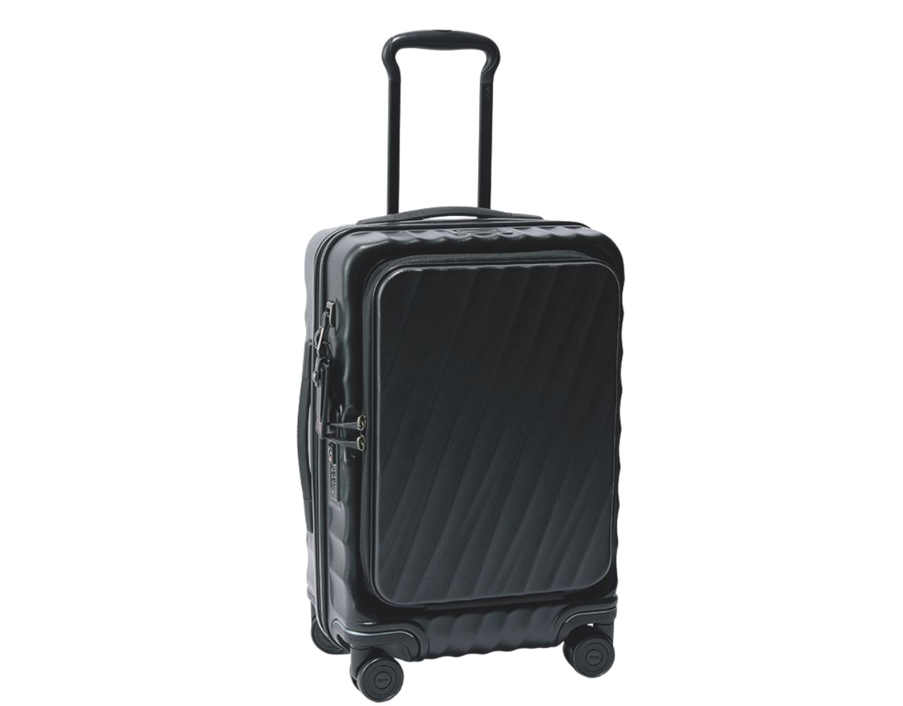 側面に入ったアイコニックな模様が目を引く〝19 Degree〟コレクション。高級感のあるツヤブラックは、CEOスタイルの定番。拡張機能が付いているほか、USB充電ポート付きで機能性も納得の充実感。