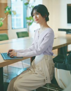 ユニクロのスラックスはグレーを選んでこなれ感を♡ めざましお天気キャスター・林佑香さんの毎日コーデ【4月8日分】