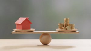 • Concept,Of,Real,Estate,Balance.,House,Model,And,Coin,Stacks