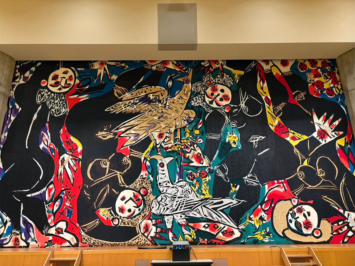 会場は弘前市民会館だったのだが、これがまた素晴らしい会館で、音響設備も充実していたし、肝心な座席の硬さもちょうどよかった。そして目を見張ったのが舞台の緞帳だ。棟方志功作品をあしらった見事なもので、ついリハーサルで下ろしてもらって見入ってしまった。