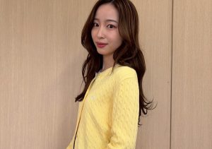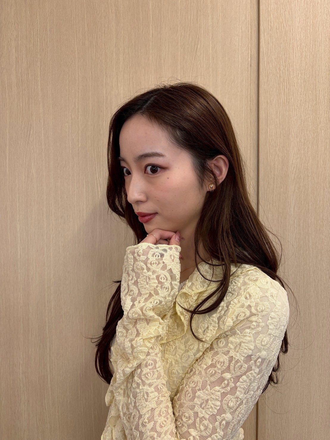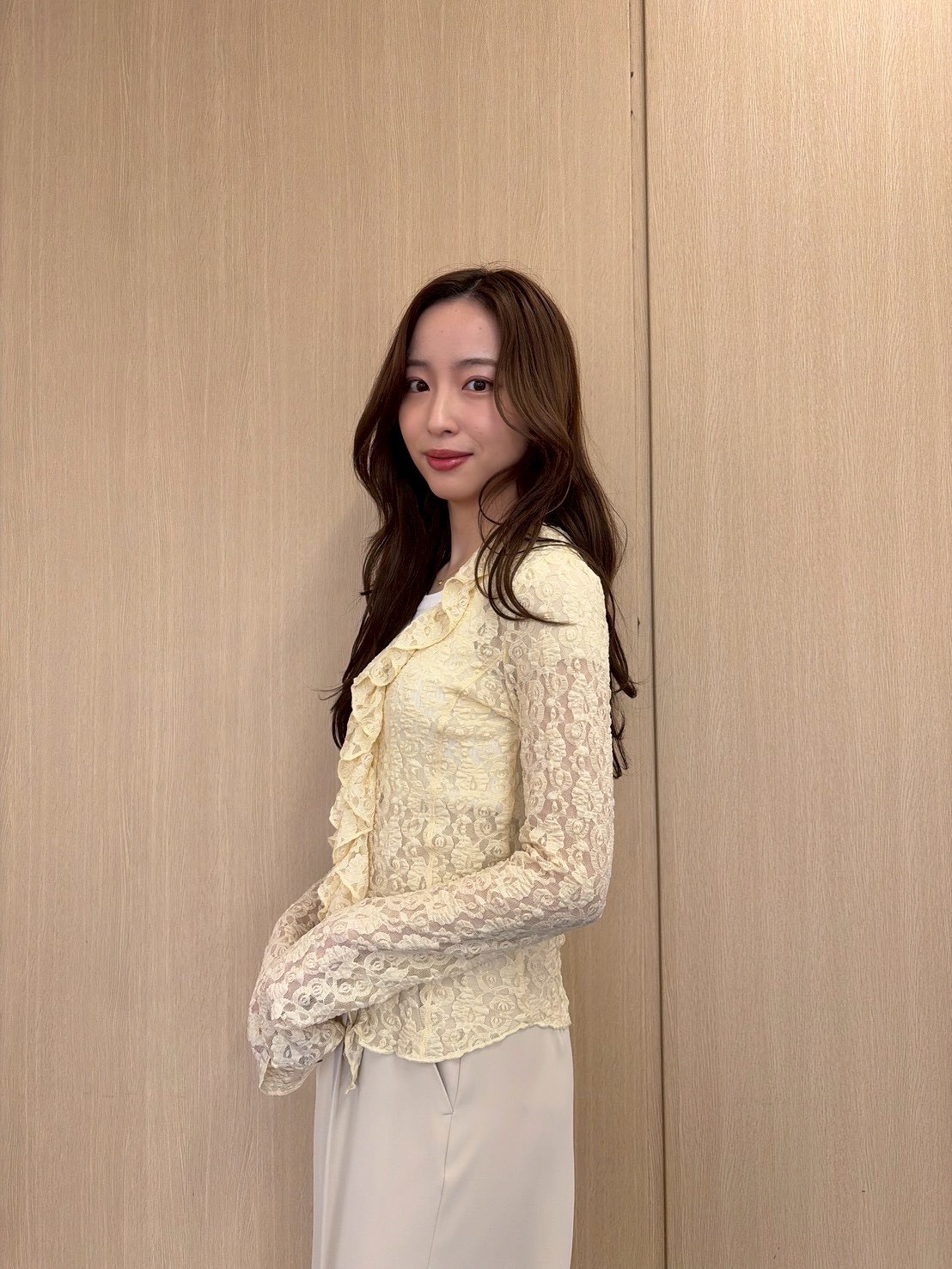 イエロー〜ベージュのグラデで上品さを演出【林さんのイエローカーディガン着用画像5枚】