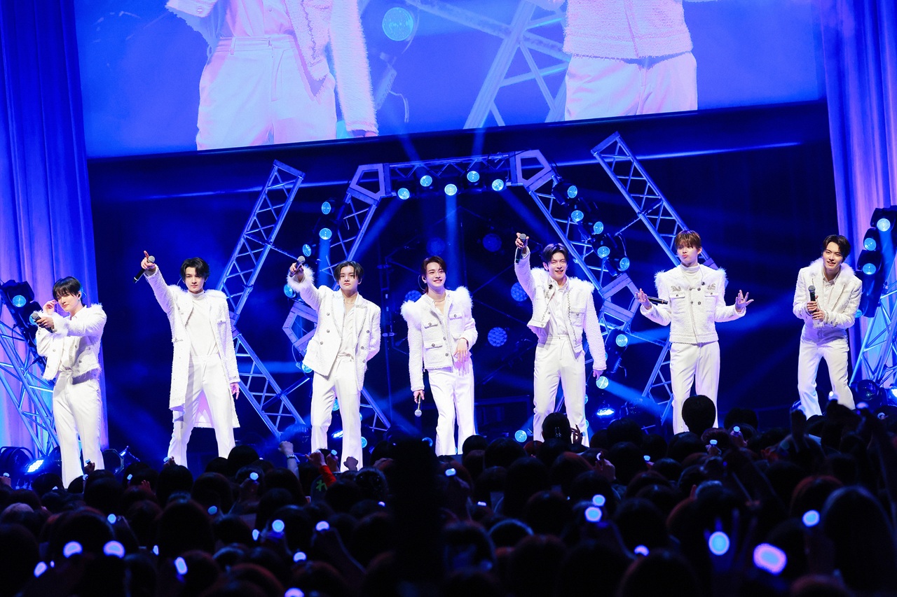初日公演は、スクリーンに映し出されたカウントダウン映像とともにスタート。会場の歓声が高まる中、メンバー7人が王子様のようなきらめくブルーの衣装で登場♡