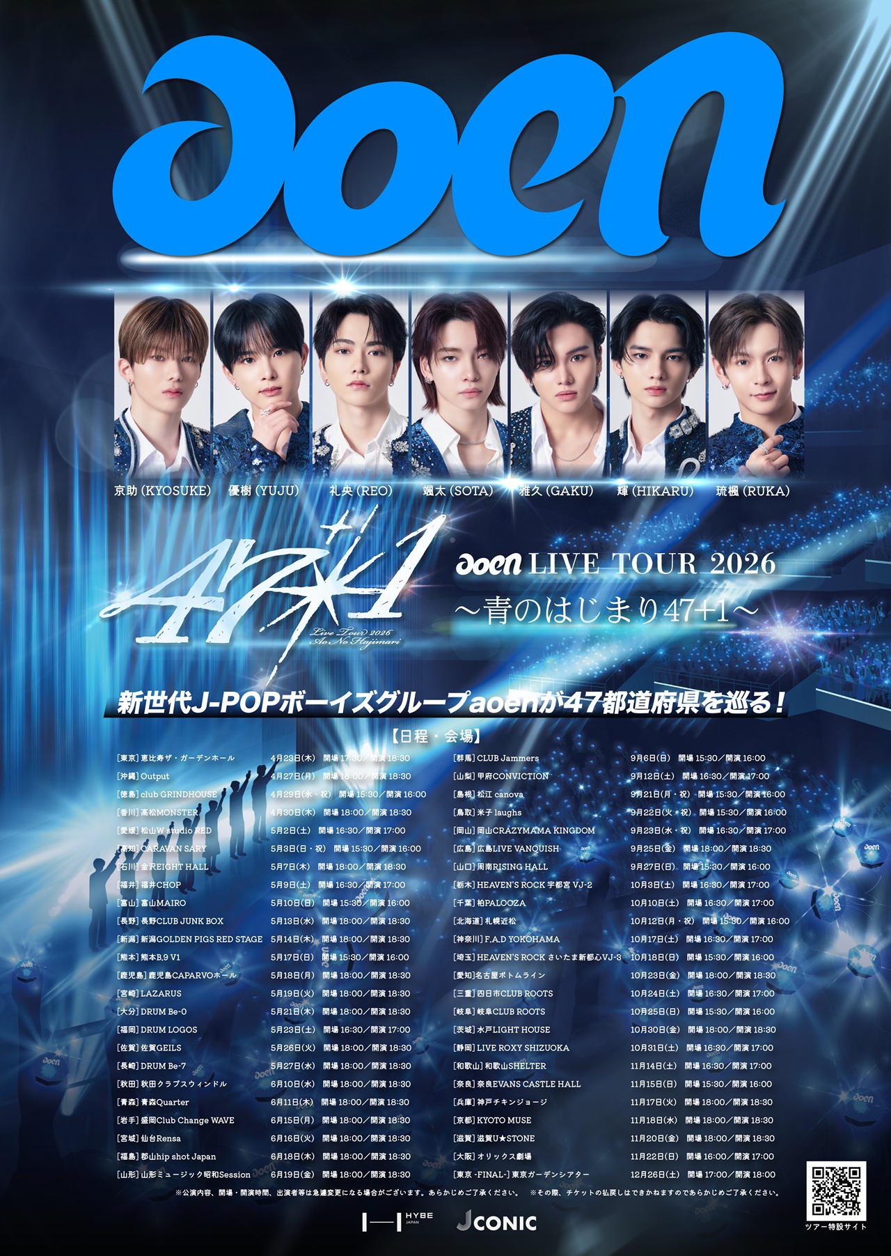 新世代J-POPボーイズグループ・aoen(アオエン)が、結成1周年の記念日となる4月23日(木)に東京・恵比寿ガーデンホールで、初の47都道府県ツアー『aoen LIVE TOUR 2026 ~青のはじまり 47+1~』の初日を迎えました。