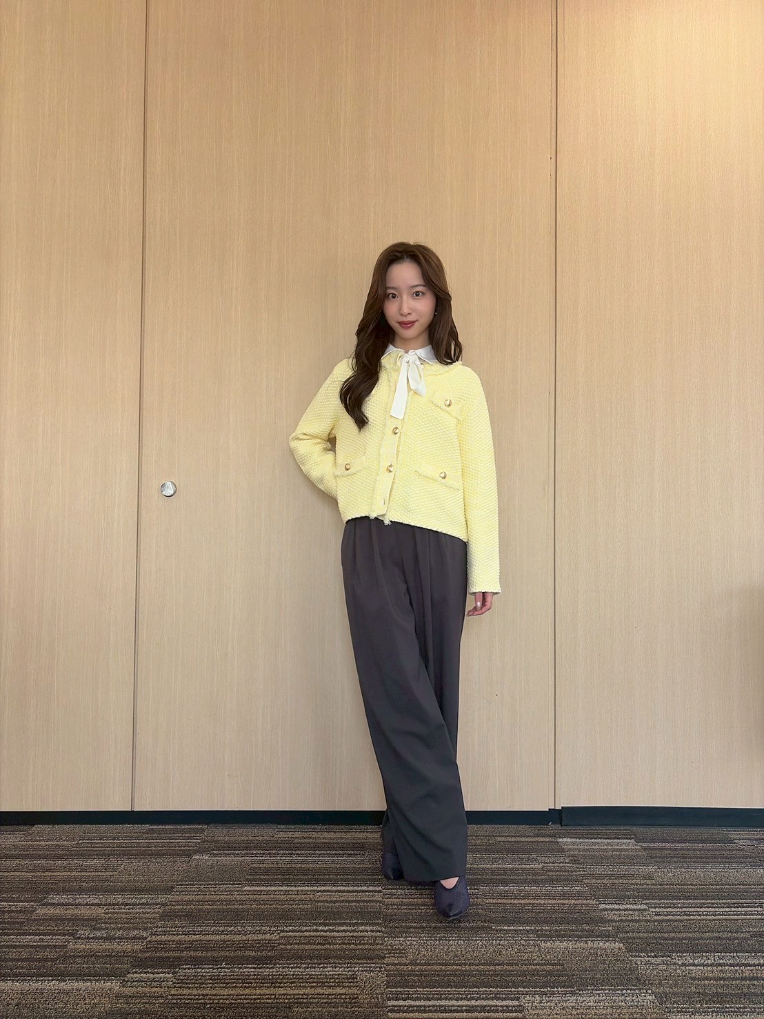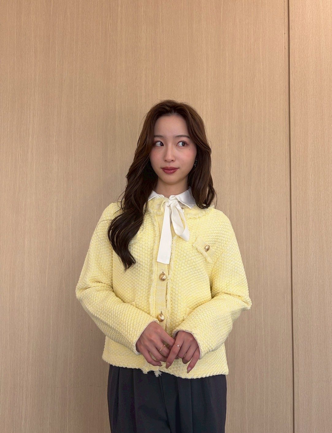 「あ、あの人おしゃれ…」と思わせるイエロー×グレーの組み合わせ【林さんのイエローカーディガン着用画像5枚】