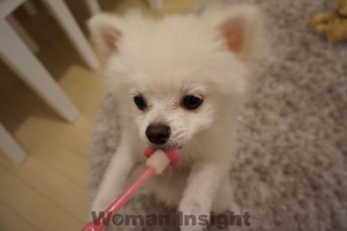 意外にも歯磨きが好きなしらす、食い気味でかぶりついてきます!
