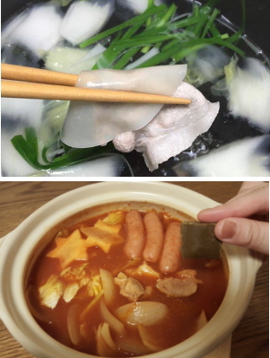 たとえば食品メーカーの「ミツカン」は、「塩鍋×ちゃんこ鍋」の他、「すき焼きとしゃぶしゃぶを組み合わせた「すきしゃぶ」、餃子の皮を豚と一緒にしゃぶしゃぶ風に楽しむ「餃子の皮でもちっと豚しゃぶ」といったユニークなメニューを提案。