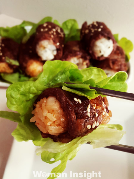 たくさん積み重ねると美味しさも倍増しますよね。肉でごはんをまるっとすべて包んでしまうと茶色一色になってしまいますが、この方法なら、目でも美味しさを楽しめるはず。