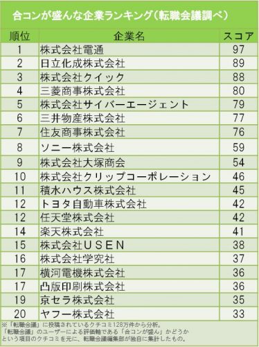 ドキドキの「合コンが盛んな上場企業ランキング」を見てみましょう!