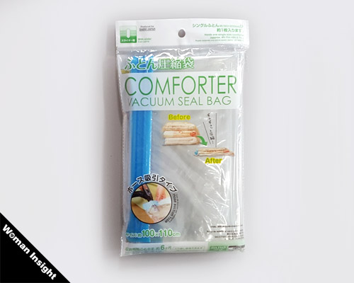 「ふとん圧縮袋」━洋服と同じく、かさばりがちな布団。布団袋もありますが、圧縮すれば、持ち運びも便利に。引っ越しでは、荷物の数が料金と大きく変わってくるので、荷物の“かさ”を低くすることが、引っ越し料金を抑えるポイントです。(サイズ:約100×110cm)