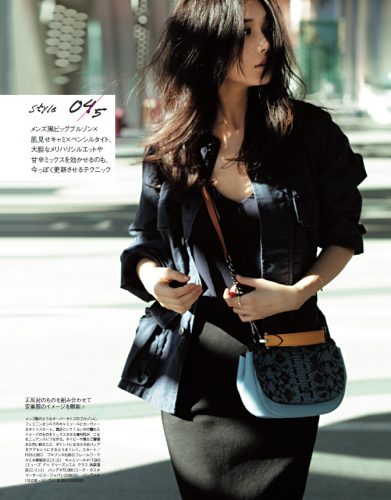 こちらも服は黒やネイビーなどベーシックな色に絞り、色や柄をアクセントにきかせるなら小さいバッグなどの小物で、がポイント。