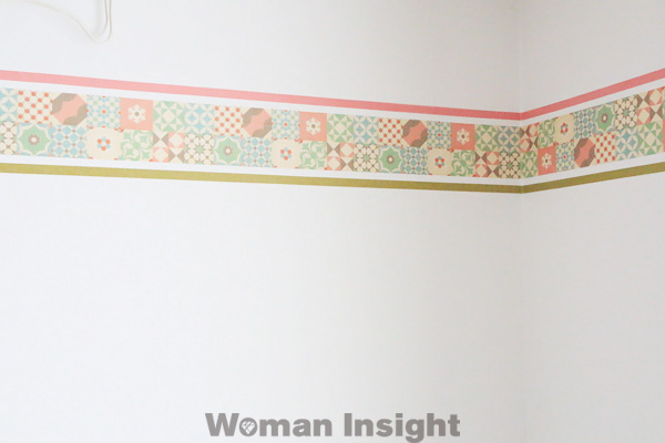 そのままでもとてもインパクトがあるので、真っ白な壁のアクセントになってくれること間違いなし! それだけでも十分ですが、細いマスキングテープを上下に組み合わせれば、オリジナリティが出ます。