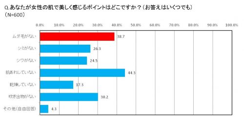 吹き出物、シミ、シワを抑えてムダ毛が堂々の2位(笑)。もう笑うしかないですよ。そんなに毛が気になるかなぁ?
