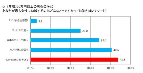 食事のマナーや、悪口を言うをさしおいてムダ毛があるが1位に!