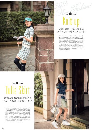 甘い中にもモードなおしゃれ感がキラリと光るチュールスカートは、かわいい派ゴルファーに注目してほしいアイテム。あえて寒色でまとめることで、今の気分にぴったりの程甘スタイルに仕上がります。