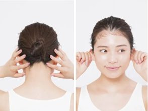 仕上げに顔の数か所にある靭帯をつまんでほぐすと、老廃物の滞りを防げます。まずは耳の前を5回。