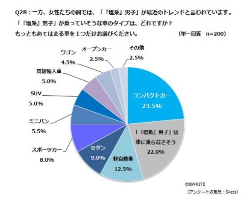 塩系男子の1位は「コンパクトカー」、2位は僅差で「車に乗らなそう」がランクイン。