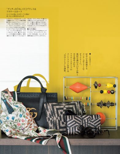 財布[ 縦10.5× 横19× マチ2.5 ㎝]¥156,000・クラッチポーチ[縦17.5×横24.5×マチ1.5㎝]¥62,000・スカーフ[縦70×横70㎝]¥29,000・バッグ[縦23×横31.5×マチ13㎝]¥278,000・サングラス¥44,000(グッチ ジャパン)