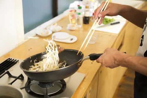 華麗な鍋さばきは鍛えた上腕二頭筋、三頭筋のなせるワザ!