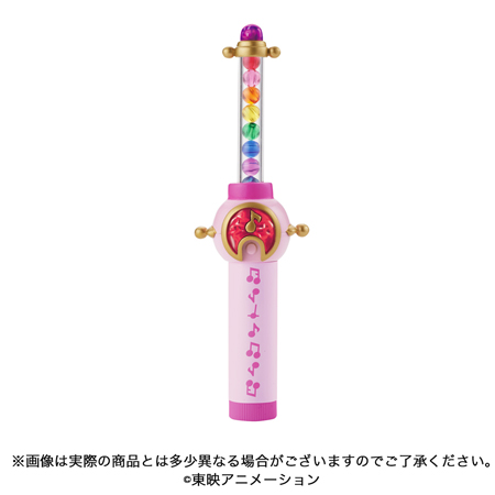 ピンク色をした柄の部分がリップクリームの容器になっていて、魔法玉の入った楽器本体部分は容器のキャップとなっています。