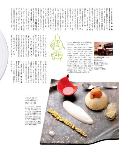 今年1月、手頃に使えるレストランが増殖中のエリア、学芸大学駅からほど近い路地裏にオープン。料理はコースもあるが、基本的にはアラカルト。おつまみ¥400~とワイン1杯からでも利用できる。多くの料理に野菜がたっぷり添えられるが、なかでも人気はカルパッチョをはじめ、小田原でその日の朝に揚がって、午後には到着するというピチピチの魚介類を使ったもの。夏場に登場する、とうもろこしやトマトを具にした季節の炊き込みご飯もお忘れなく。