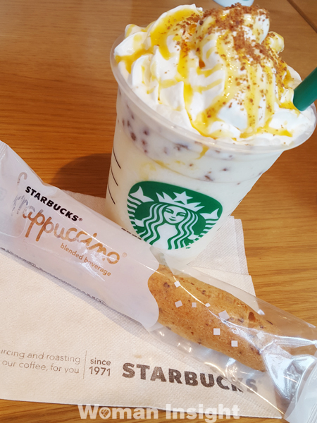 「秋なのにフラペチーノ?」と思われそうですが、9月はまだまだ残暑厳しい季節。それにメイプルシロップやハニーといった、温かさを感じる素材を使っているので、気分的にも秋のドリンクという感じ。