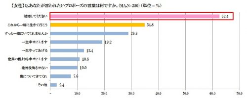 そして「一緒に」系のふたつが並んだあとの4位以降は「一生幸せにします」「一生守ってあげる」などが並びました。