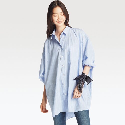 一枚で彼のシャツを借りちゃった風に着こなしても、トレンドの太ベルトでウエストマークしてワンピっぽく着こなしてもOK。今の季節なら、デニムやボトムと合わせてスッキリと着こなしたい!