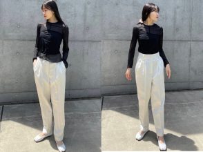 アパレルブランド「DRWCYS」の展示会でも、サッシュベルトをつけたコーデを発見! いつものベルトをサッシュベルトに変えるだけで、旬でこなれた印象に。ウエスト位置も高くなり、脚長効果も期待できます♪